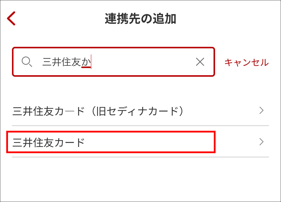 いつも楽天家計簿をご利用いただきありがとうございます。 セディナカードは、2024年に「三井住友カード」へ合併されました。本合併にともない、楽天家計簿アプリ内の提供機関名も変更しております。 変更前:セディナOMCカード変更後:三井住友カード(旧セディナカード) なお、ご利用いただいているカードの種類により連携方法が異なりますので、今後の連携方法は以下をご確認ください。 ----------------------------------------------------------------------------------------------------①下記リンクより、「VpassID」でのログインおよび明細照会が可能な場合は、 「三井住友カード」をご選択の上、連携をお試しください。https://www.smbc-card.com/mem/index.jsp ②下記リンクより、「セディナビID」でのログインおよび明細照会が可能な場合は、 「三井住友カード(旧セディナカード)」をご選択の上、連携をお試しください。https://www5.smbc-card.com/member/login.jsp ----------------------------------------------------------------------------------------------------ご不明点がありましたら、アプリのメニュー内の「ヘルプ」の下部よりお問い合わせください。今後も楽天家計簿をよろしくお願いいたします。