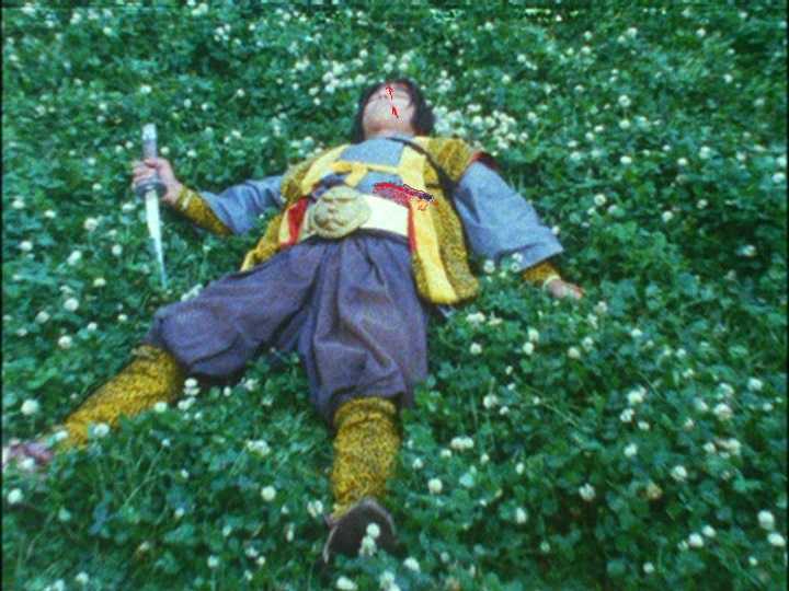 ザグロとの戦いの末、花畑に横たわるブラックジャガーの亡きがらが黒影豹馬の亡がらに戻るシーンがある