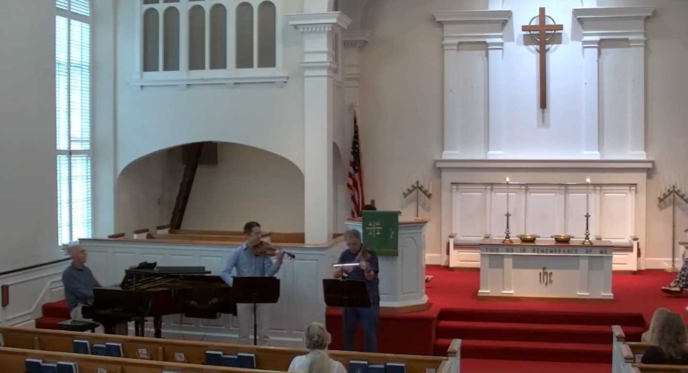 客演としてお招きいただき、教会で演奏いたしました。 夏の礼拝は信者さんの出席率も激減してしまうようで、何かと地味になりがち。そうゆうときこそ音楽で盛り上げたいという教会側のご意向で、前向きになれる楽曲を演奏しました。 バイオリン二人(ブルースさんとぼく)とピアノ(トムさん)での三重奏。「What A Wonderful World この素晴らしき世界」、「Jesu, Joy of Man's Desiring 主よ人の望みの喜びよ」、「Alla Hornpipe 水上の音楽よりホーンパイプ」。 マリベス牧師さんや教会の皆さんがとても温かく迎え入れてくださり、心地よく弾けました。