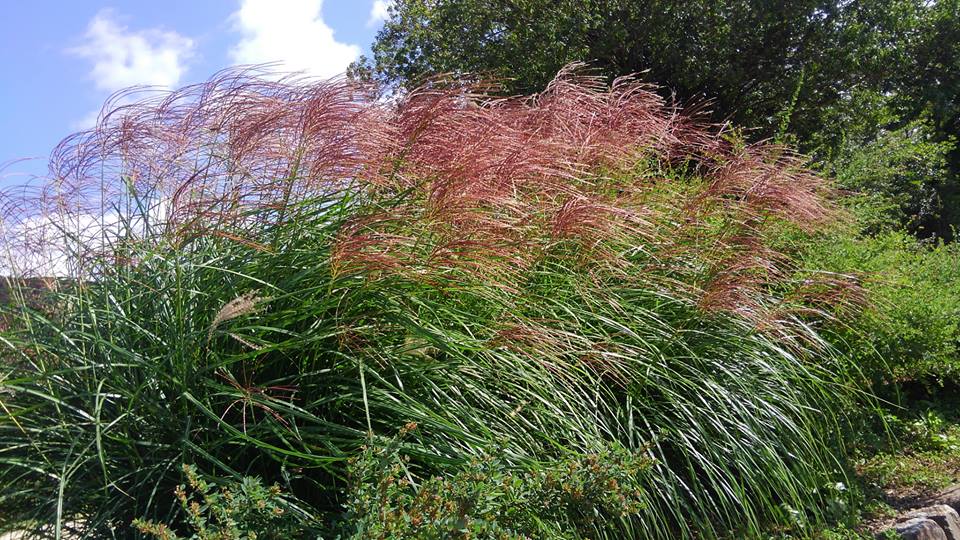 青空の下、ススキの穂は気持ちよく風になびいている。