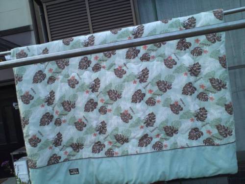 今日は予定通りしまむらへ行ってきた。毎週水曜日はしまむらへ行かねば。広告日だから(笑)って事で起きてトップバリュのライトミールの・・・・ロイヤルなんちゃらを飲んでメイクしてちぃちゃん誘ってしまむらへ。へへっついに買っちまったぜ。掛布団ー!!僕たんが使用してました、フワフワな心地よい羽毛布団くんは暑すぎて眠れいないんだな。クーラー使用だぜ。って事でチェンジすべく買いに行きました。モンステラ柄。他にも色々と買ってカインズに行ってシーツを買ってきた葉柄?私、緑好きなんですよ。自然な色だから。カインズ歩いているぐらいから足がピークでちぃちゃんの車に積んであったクロックスに履き替えた瞬間神がおりた気がした。本気で。ヒール履きなれてないってダメだね。筋肉痛になりそうあとでみたら小指に2個も水ぶくれ出来てたー。お昼を買ってお家で食べてボーってしてりちゃまを迎えに行って、歯医者に行ってからあかのれんへピンクパンサーのタンクトップ買ったピンクパンサーも好きだよ。でもどっちかっていうとBabyピンクパンサーの方が好きだけどね。お家に帰って洗濯物を入れてシーツを装着。今日も忙しい1日だったな。今日あんなに寝たのに眠いぜ。今日の涼スタイルで快眠しようー