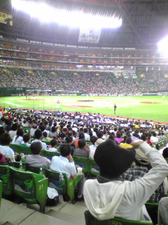 ヤフードームにて、今年2度目の野球観戦!!今日は、 ソフトバンク VS 広島カープ 交流戦。。さすが、広島戦だけあって、広島ファンがレフトスタンドから、内野側までたくさん!!!応援もいつものホークス戦の、倍以上の迫力でした前回は、ライトスタンドの、最前列での観戦でホークスファンに囲まれての応援も貴重な体験だったけど、今回は、内野席からゆっくりの観戦でした今日の観戦は、妹・母・甥っ子と一緒。6歳の甥っ子は、野球にはまだほとんど興味なしのため、試合が始まってまもなく・・・・・「野球ずっと見るとぉ~? トイザラスにいきたい。。。」ただをこねてしまう始末。。。。。仕方なく、トイザラスでおもちゃを買ってあげると、ご機嫌ご機嫌ドームに戻るときに、バルーンパフォーマーの人に遭遇すると・・・仮面ライダーダブル?作ってもらって、さらに上機嫌こんな作品作れるのって、やっぱりすごい!!!!いろんなパフォーマーの人に最近よく会う機会があって、大変だろうけど、人を楽しませる技術と気持ちはとても素晴らしいな~と、思うこのごろでした。私もそんな気持ちをもっていこうと改めて。。。。。ご機嫌になった彼は、その後しっかりホークスの応援してました。試合のほうは、7-4で、ソフトバンクの快勝!!またいきたいなと思った野球観戦でした。