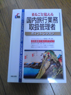 今年の9月!国内旅行業務取取扱管理者!!!受験することに、決めました!!!思い起こすと10年前、大学中退してまで飛び込んだ旅行の世界。。。。一度はやめたものの、ぐるり回ってもう一度挑戦してみたくなった。今回は、資格を取ってみよう。自分探しの旅・・・続けながらなので目に見えた目標を持って今度こそ。。。。。あきらめそうになったら、誰か、渇をいれてあげてください。