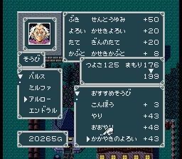 試しにセーブして購入してみると、剣は攻撃力65で鎧は防御力43と値段相応に強力