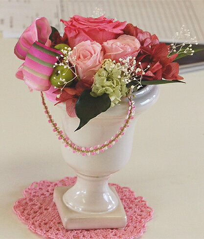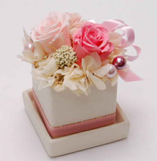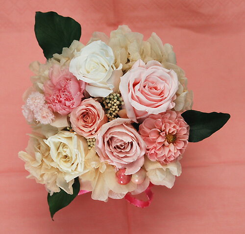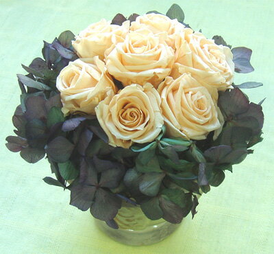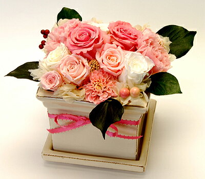 | presereveは保存するという意味で、プリザーブドフラワーは長期間保存できる花です。 フランスで開発された技術で、本物の花の水分を保存料と交換し、柔らかな質感と鮮やかな色あいを保ち続け、保存状態がよければ10年以上保つことができます。 見た目は生花と区別がつかないくらい美しく、 プリザーブドフラワーのアレンジは、水をあげる必要も無く枯れる心配もありません。 |