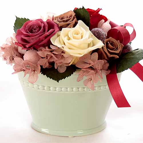 プレゼントに最適です!とてもステキなアレンジです。花器もかわいいですね。プリザーブドフラワー【B35】
