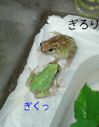 コオロギを捕るときには一瞬(二回ぐらい…)ミドリとアマ吉がにらみ合い、どっちかがもう一方をつつきました…