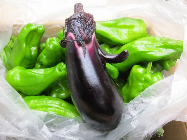 今朝、菜園で野菜を収穫中に、変な形のナスがありました・・・今年の夏野菜は例年にないほど、良く出来ています・・・下の写真は、ミニトマトです・・・色づくのを待つところです。