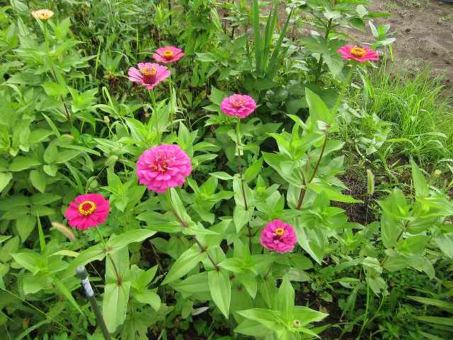 昨年の春は、種を蒔いて育てた「百日草(ジニア)」今年は、その種がこぼれて自然に芽が出て咲いた「百日草(ジニア)」です。予想以上に、綺麗に咲きました!!