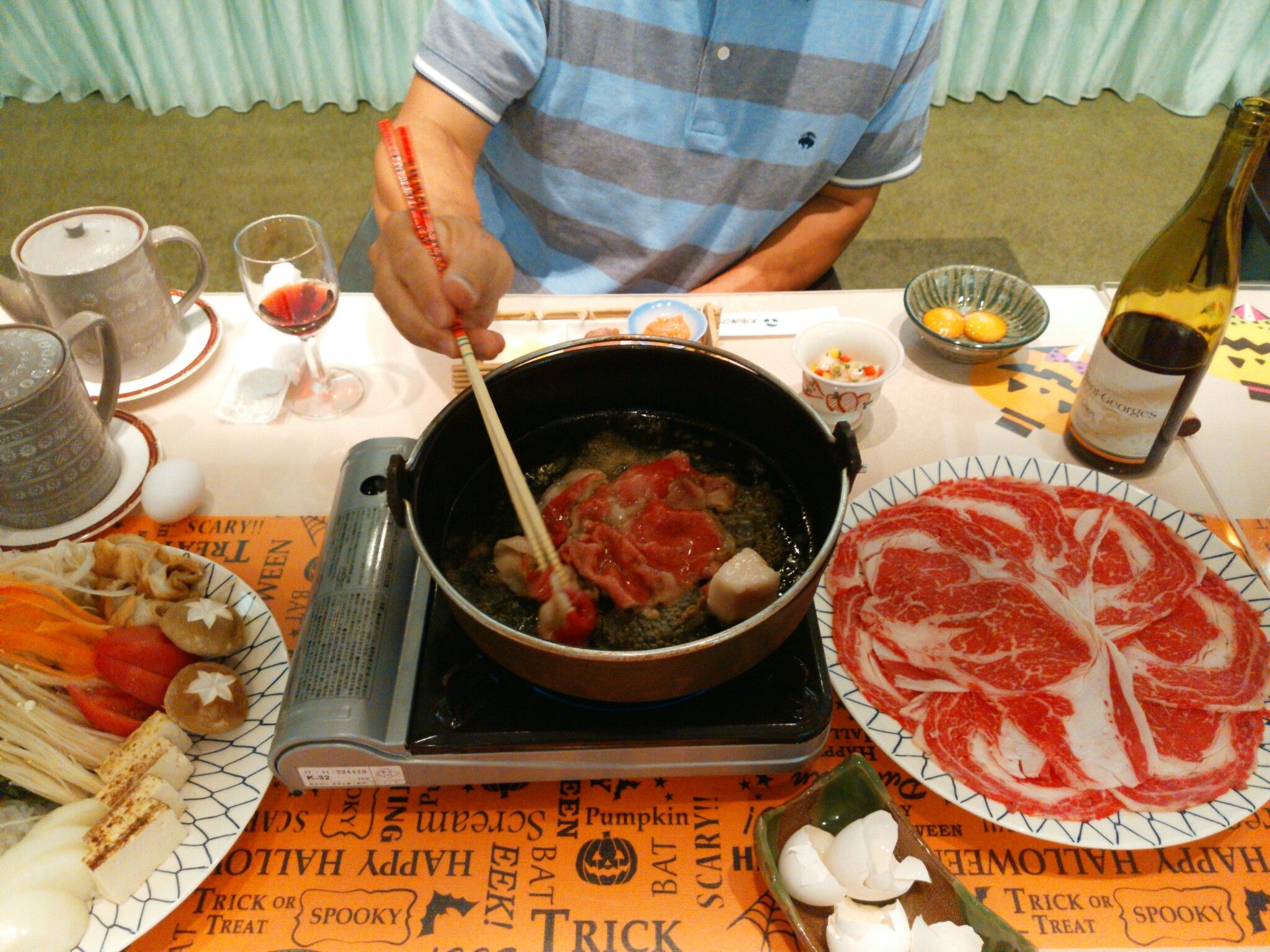 ディナーはすき焼きで、翌日からのゴルフのためにパワーをつけます。