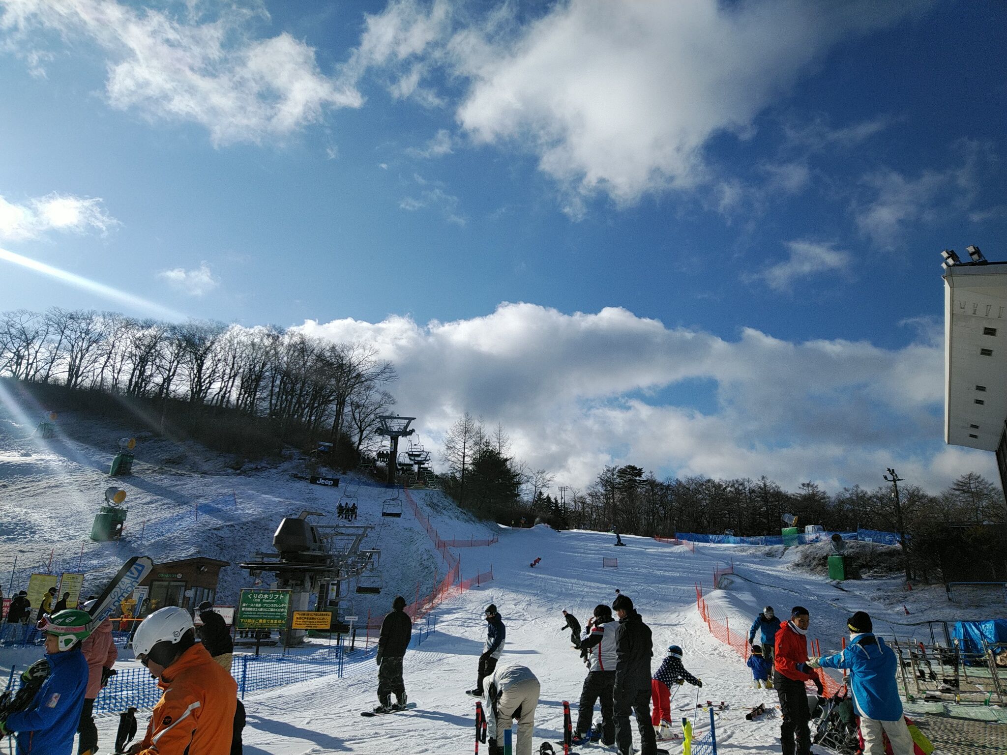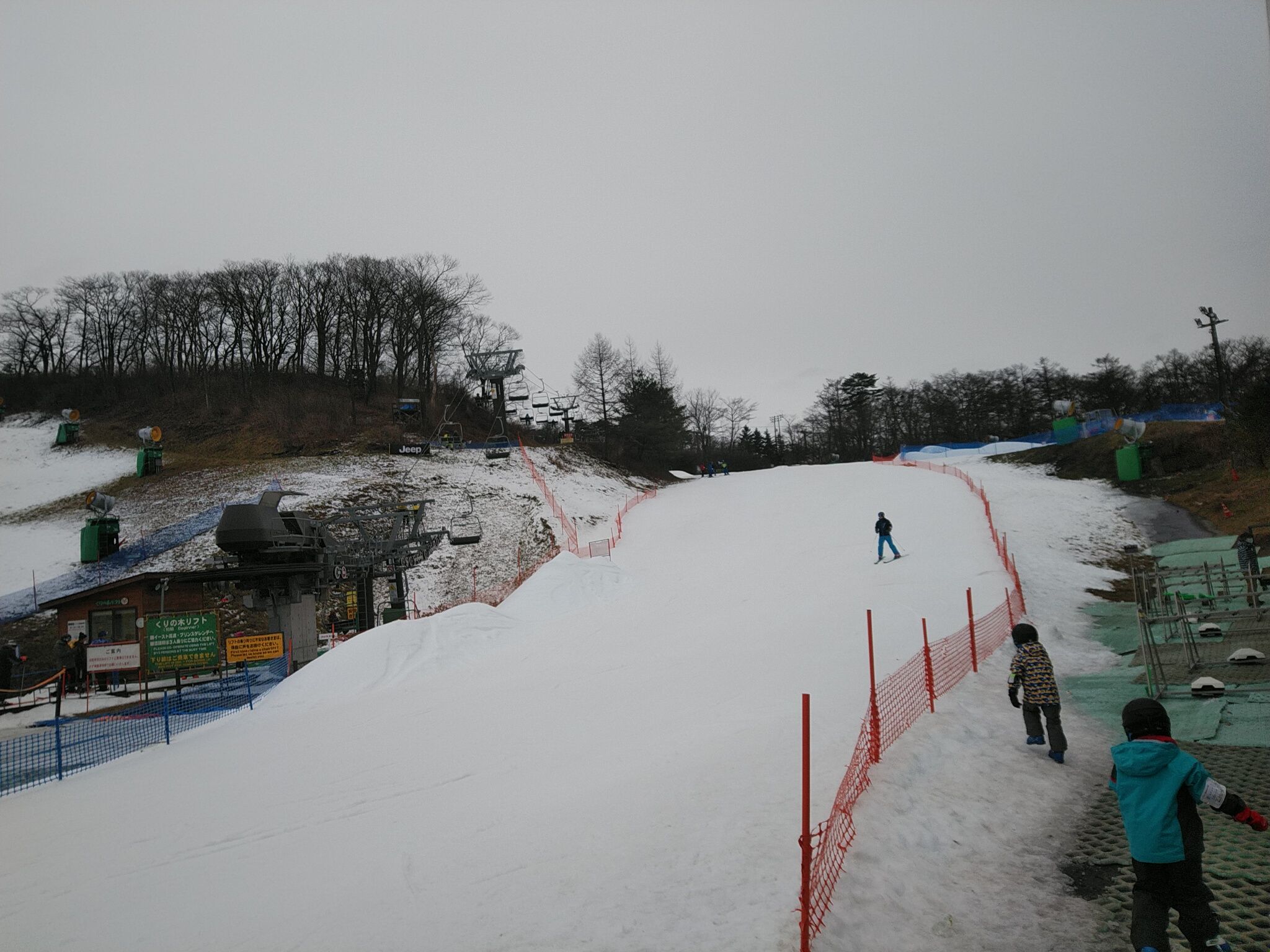 まだまだリフト2本とコース2本では激混みは減らないです。雨の後ということもあって、バーンはスノーセメントをまいたようですが、