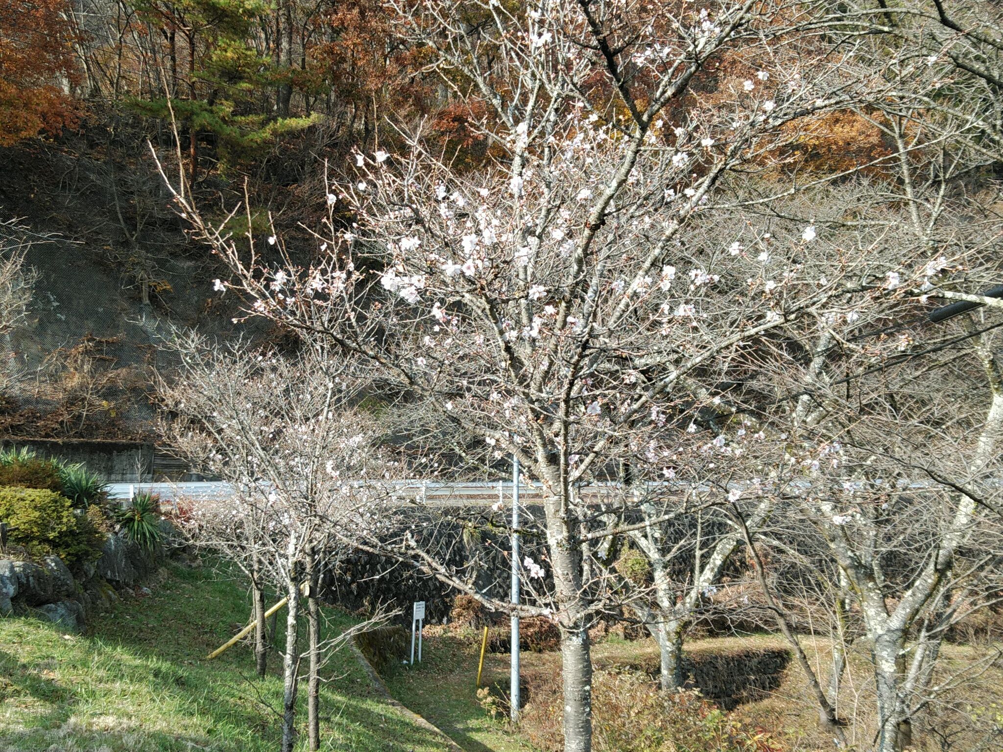 駐車場近くには冬桜の花が満開