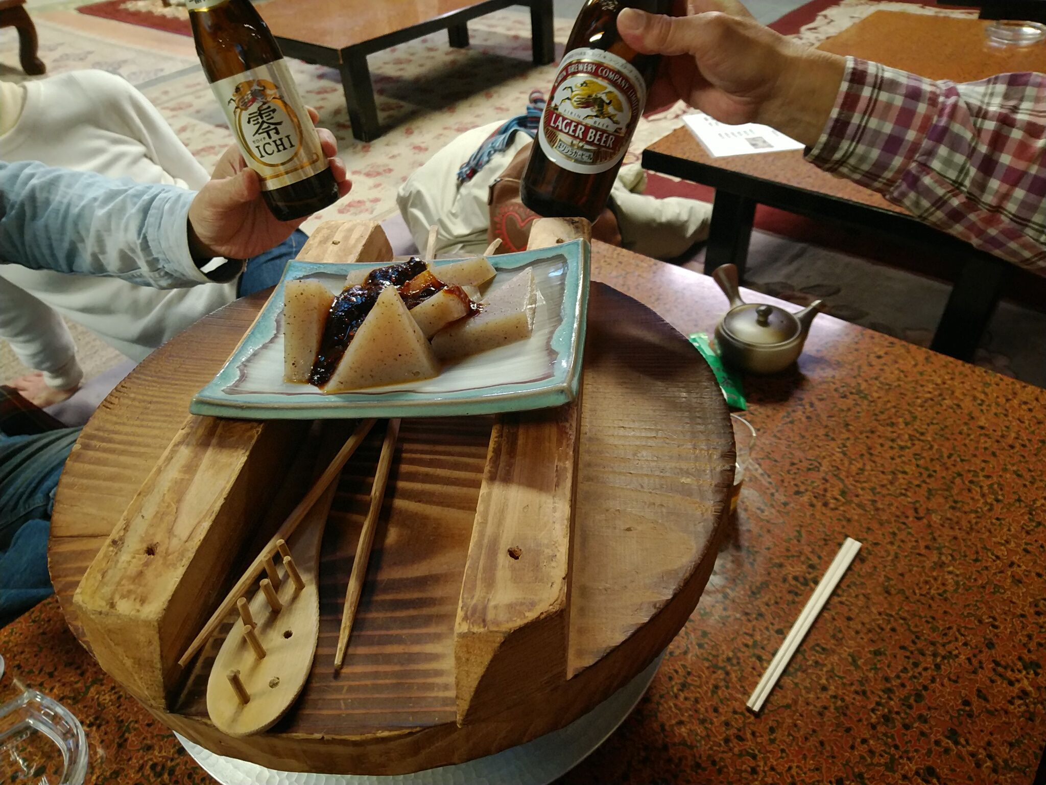 というので、4人で2人前と味噌こんにゃくをいただきました。