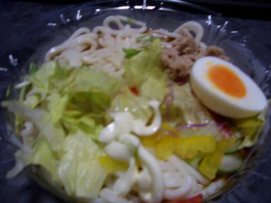 冷しサラダうどん 近所のヤマザキショップで買った冷しサラダうどん麺つゆの中に付属のマヨネーズを入れるのだけど、これがまじで相性が良くて美味しかった