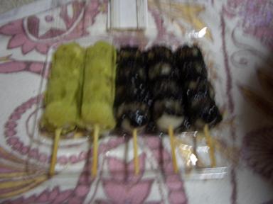 きな粉と胡麻だれの団子です自分は胡麻だれの団子が好きでよく買います