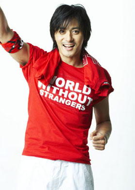 これはカジュアルブランド<Giordano>のモデルとして活躍しているチャン・ドンゴンが、“感動”と“歓喜”という2つのテーマで行われた写真撮影現場で、このような姿を演じたもの。