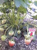 昨年植えたお庭のイチゴ☆やっと、やっとほんのり赤くなってきました~楽しみ♪