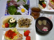 今日はひな祭り♪土曜日なのでパパも一緒に夕食☆朝からドラえもんの映画に連れて行かされ帰って夕食準備して・・・体力使い果たしました・・・^^;