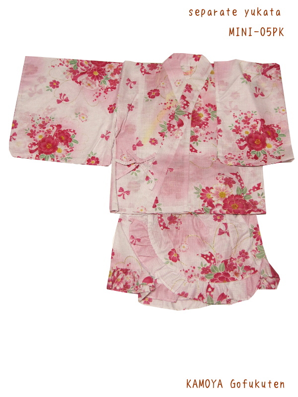 上衣は打合せの紐で結び、下衣はスカート式で着付けが簡単でございますのポイントは、ラメ兵児帯、これを結んであげたら浴衣姿に大変身。兵児帯に前板(帯板)に代わるものを使って結んであげたら、帯が着くずれ紐みたいになりません。岡山駅西口 かもや呉服店http://www.netyokocho.jp/kamoya/category/29/184/