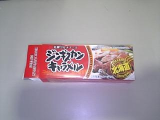 まねきはなさんから頂きました!北海道の ジンギスカンキャラメルです! まねきはなさんのブログで紹介されていたので、 私が「味見がしたい!」と書き込みをし、早速頂いちゃいました。 とても興味があるじゃないですか、こんなめずらしい食べ物。 まねきはなさんは、食べるのに勇気がいるよ~ といってたのですが、私はとてもワクワクするんですね~ だってネタにもなるじゃないですか。(笑) 結構有名な食べ物らしいですね。「まずい」が売りだとかなんとか。 クラスの子にも配り、私も早速お口の中へ・・ 「・・・・・・・」 「・・・・・・・」 う、う~~~~ん 確かにマズイっちゃマズイ。 食えなくもないが・・ 噛めば噛むほどキャラメルからイヤ~な油が にじみ出てくると言うか。 肉風味なのに甘いという不思議なお味でした。 クラスの子の反応も楽しめたので 私としては大満足です! 楽しい時間をすごせました。 まねきはなさんありがとうございました~~