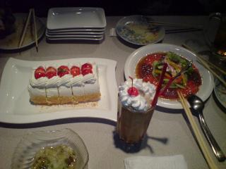ってか、その日で書けよってな感じですが。(^^;)先週の土曜日はバイトをお休みしてお友達3~4人と”だいこんの花”というバイキング形式のレストランに食事会に行きましたこれがなかなか種類も豊富で時間制限もないし味もおいしくて楽しい時間を過ごす事ができました。なんか居酒屋感覚でしたね~私は飲むより食べる方が好きなので金額も気にせずばくばく食べまくってました。4時間も居たよ・・上のメニューは自分がチョイスしたもの。私はこれが食べたいと思ったものはご飯物、甘いもの見境なく同時に食べても平気なんですが、よくやめなさいと怒られる
