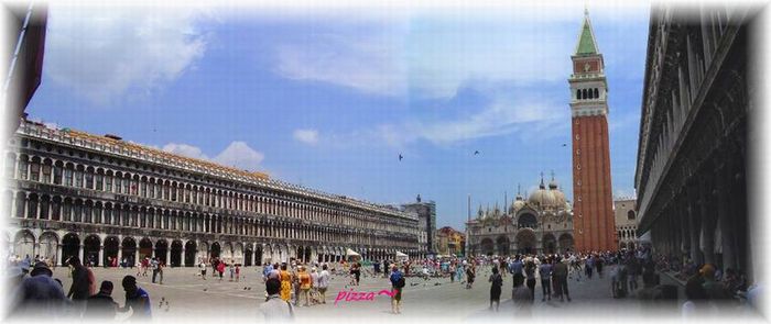 日本列島さすがに真冬の寒さ~~こんな日は大好きなイタリアのヴェネチを思い出すわ~~ここが有名な本当に有名な サン・マルコ広場(Piazza San Marco)左側に何本もの柱が見えるでしょう?柱の下には歴史あるカフェが並んでいます!!夕方になるとそれはそれは幻想的な雰囲気に~ただ本当に今はユーロが高いからコーヒー一杯が2000円な~んて^^;そして写真の大きな塔は鐘楼!!そして隣のま~るい屋根が↑サンマルコ寺院(Basilica di San Marco)サンマルコとは聖人マルコの事!マルコさんはヴェネチアの守護聖人として祀られてそのシンボルが翼を持つライオンなのでーす!写真のファサードの一番高い所にサンマルコさんの像が立っています!そしてその下には金の翼のライオンが~この写真で分かるかな??勿論中も見物は出来るけど私は入った事が無くて~2時間以上は待たされるから......観光客で一杯なんだもん!広場で一枚パチリヴェネチは車が一台もありません!車の乗り入れは出来ません!なので此処に住んでいる人達の交通手段は主に↑の船なのでーす!だから歩いていてもとっても安心だし心なしか空気も綺麗に思えて!そして世界的に超有名なゴンドラ♪何度か乗ったけど私は苦手!船酔いで・・・・これがヴェネチンブルーでーす♪空の青と海の青がそれはそれは溜め息もの~~ヴェネチの街は細い細い路地が・・・夜はまるで迷宮のよう!!写真の向こうに小さな橋が見えると思うけどヴェネチアはこんな小さな橋が数百も~此処に住んでいる人達の生活には欠かせないものになってまーす!観光客にはとっても素敵に見える物でも此処ではしっかり生活の一部!でも....本当に本当に天国に一番近い...そんなヴェネチアでーすデイズニーシーがまるでヴェネチアのように上手に作られているけど.....比べれば一目瞭然だわん今年は絶対にヴェネチアでバカンスを~~お願い!!ダーリン!!pizza.。o○