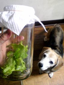 先日、白菜の苗を買って来て植えた。 一週間であっという間にこんなに大きくなって・・・ 慌てた・・・!! こちら、9月の初めに苗を買って植えた ハクラン(白菜とキャベツのこども) 鉢が見えないくらいに大きくなっている。 これ以上大きくなったらどうしよう・・・ 今までこういう野菜はお店でしか見たことがない。 実際に畑に植わってるところを近くで見たことないので お店の白菜は実際の白菜の真ん中のとこだけ、 と聞いて、引っくり返りそうになった! で、大急ぎで鉢を買って来て植え替えた。 (今頃、植え替えて丈夫なのかな?) これでも小さいかな・・・ でもこれ以上大きい鉢は 移動させる時、大変だし・・・ 今度植える時は、ベランダ菜園用の ミニ野菜にしよう・・・ 鉢を買いに行ってる間、いい子にしてたのでお土産!笛吹きバナナ。 しばらくは遊んでたけど、すぐに飽きて、ほったらかし・・・ワンコも年を取ると飽きっぽくなるのかな?