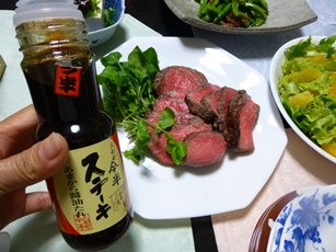 先日、モラタメさんでこちらの商品を試してみました。 ステーキじゃなくて、ローストビーフで。 レシピはこちらフライパンで簡単!ローストビーフ ちょっと甘めのソースが、 にわか作りのローストビーフにもぴったり~ 手間なく、美味しいソースでいただけてこれはオススメです!! 本みりんに香辛料を加え、味と香りそしてコクを極めた和風ステーキたれ。ステーキあまから醤油たれ(250g)【牛肉】【人形町 今半】