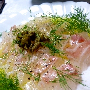 以前、モラタメさんに申し込んだスパークリングワイン。それに合わせた料理はこちらでした。塩麹で鯛のサラダ(カルパッチョ風)訂正編料理名:鯛のカルパッチョ作者:遊星。.:*・゜ 養殖の鯛なんだけど、塩麹につけて身も味もひきしまって、 あとは薄切りにして、E.Xバージンオリーブオイルとレモン、塩コショー ベランダのディルを摘んできて、 ケッパーを細かく刻んでトッピング。 ハイ、出来上がり~ 試したスパークリングワインは、 「ジェイコブス・クリーク」」 ジェイコブス・クリークってオーストリアの川の名前なんだって。 鯛の塩麹漬けとレモンの爽やかさが、このワインにぴったり~ アミノ酸でモッタリとした鯛の身が、シュワシュワの泡に包まれて とても美味しくいただきました。