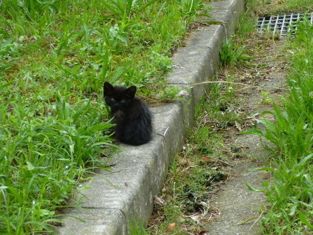 今日、出勤途中、公園のそばを通った時、この子を見つけた。原っぱを横切ってそばまで行った見たら、か、かっわいい~~~~!!!近くへ寄ると逃げはしなかったけど・・・「シャーッ!!!!」って言われた・・・でも この近くにカラスが3羽、なんだかこの子猫を狙ってるように見えた・・・出勤時間があるから、連れて帰ることもできず、とりあえず、サバトラの餌を少し残して立ち去った。その場を離れて遠くから見ると、餌を食べてるみたいだった。明日もいたらいいなぁ~仕事だから連れて帰られないし、連れて帰ったところでミャーコがいるから隔離しないといけないし・・・ カラスにやられていないことを願うのみだ・・・サバトラに久々に会った。サバトラの耳はVの字にカットされてる。地域猫で、子孫を残さないよう去勢されている。ノラ猫にむやみに餌はやらない方がいいけど、この世に命を与えられたのだから、その命と共存できる方法はないのかな・・・もし、あの公園でもう一度あの黒猫ちゃんを見たら・・・考えてみたい。けーやんはひっくり返るほど、びっくりするかもしれんけど・・・ミャーコを保護したとき、人間を見て逃げる様子もなかったから、今日の黒猫はこの時のミャーコより、月齢は上だろうな・・・シャーッって・・・威嚇したもんね・・・