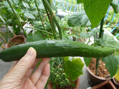 深夜、すごい雨音でベランダの中へ入れられないゴーヤはどうなったかな?と様子を見てみたら・・・雄花が咲いとった・・・ここにも・・・今日じゃ遅いんだよ~~根元にふくらみがないのが雄花。これを摘んで、花粉を雌花に付けます。マンションじゃ虫が来ないので、早朝に人間がやらないと受粉できず、結実しません・・・この子が咲いてる同じ日に咲かなきゃ、雄花の意味がないんだよ!ほら、もうしぼんじゃってるもん・・・でも新たに雌花発見!この子は明日の朝、咲そうだな~~楽しみ・・・この子は明後日くらいかな~雄花はいっぱいつぼみがあるから、そのうちどれかが咲くでしょう・・・わからんけど。きゅうりの赤ちゃん。水イボいっぱい・・・トマトの赤ちゃん、尻腐れ病かも・・・カルシウム不足かもね~~今日は美容室の予約してお出かけ~雨、大丈夫かな・・・