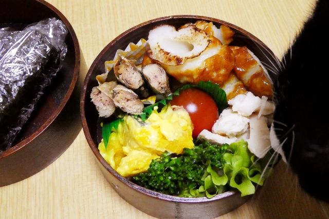 昨日で賞味期限が切れてた竹輪・・・まだ食べられる!と油で焼いて甘タレをつけてお弁当に。あ”~~~~!やめてぇ!ぐんちゃんのじゃないよ!もう油断もスキもない・・・ミャーコはそんなに食べ物に固執しないのに、ぐんちゃんはビーグルに近いほど食いしん坊・・・・2日前のイワシの生姜煮がやっと消費できました。茎ブロッコリーとレタスはベランダ。カボチャのヨーグルトサラダ、寒い時期だけのお弁当メニューです。横にあるのは、梅干しおにぎりです。明日も雨かなぁ~桜の頃って、寒い日や雨降りの日が多いね・・・みなさんも暖かくしてお過ごしくださいませ。
