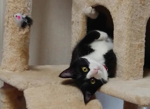 注意:音が出ます見てるとぐんちゃんは一人でいつまでも遊んで、いじらしいと思うけど、ミャーコがおやつを食べてると、口にくわえてるおやつをたたき落とし、横取りするという悪いヤツです。