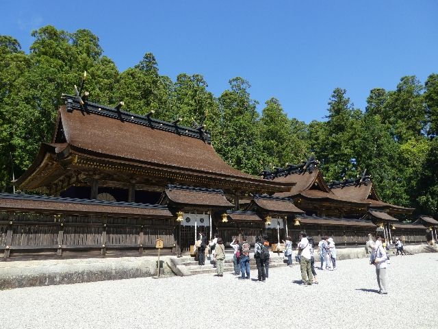 谷瀬のつり橋を後にして、バスの窓から十二滝を見ました。高さ100~70メートルあるらしいです。国道沿いにあるので、車窓から見るだけ。このあと、しばらく走って世界遺産 熊野本宮大社でバスを降りました。神社は書けばキリがないので、説明は割愛。熊野本宮大社 詳しくはこちら拝殿熊野神社のシンボル、八咫烏(やたがらす)にちなんで黒いポスト。角度を変えて、金の八咫烏。八咫烏の足が3本あるのは・・・調べてないからうろ覚えだけど、1本は天(神様)1本は地(自然)、もう1本は人間を表してて八咫烏は太陽の化身で、天、地、人は同じ太陽から生まれた。確かそんなのだったと思います。ね、脚、3本あるでしょ?あ、でもなんでここのは金の八咫烏なんだろう・・・?これは。亀に見えないこともないですね・・・さてこれから本殿に参拝です。つづく・・・台風、大阪を過ぎ去っていきました。前回ほどひどくはなかったのですが、それでも、通過した町では被害があり、いたましいことです。