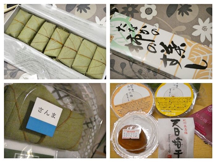 熊野では銘菓より、こういうのを買いました。田中の柿の葉すしはデパ地下でも売られてるけど、やっぱり直営店で買った方が美味しいですね。季節限定の「さんま」柚子のすりおろしが乗せてあって、香りもよく、とても美味しかったです。おススメです。さんまの柿の葉すし、食べちゃったので、画像をおかりします。瀞峡の山彦橋のたもとに無人販売所があって、この青いミカン、100円でした。パッと見たとき、スダチかと思うほどちいさかったのですが、見た目より甘くて、摘果されたみかんでしょうが、100円はうれしいです。こういう農家さんの無人販売所、日本でしか成り立たない商売(?)だそうです。だれも見てなくてもちゃんと払う人がほとんどだとか・・・日本人として、誇らしいですね。犬猫や猪、熊じゃないんだから、当たり前ですが・・・