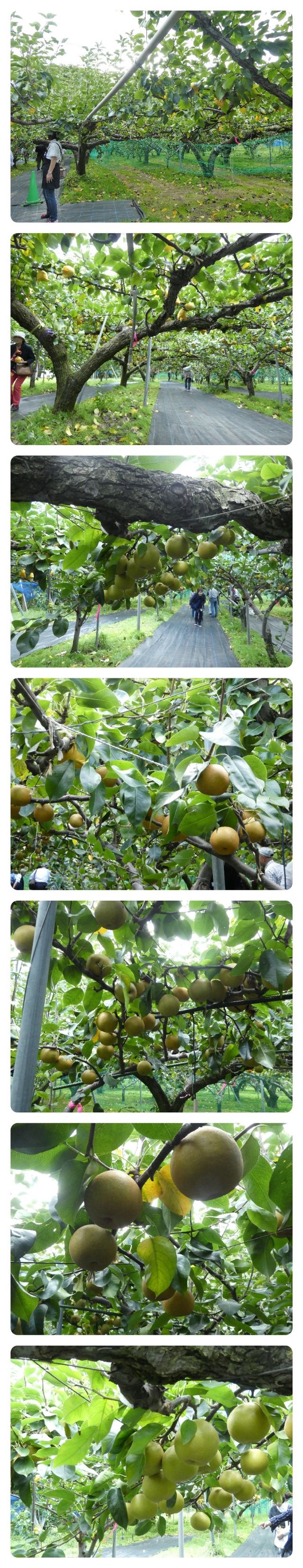 砂丘会館でお昼ご飯を食べ、砂丘の写真も撮って・・・このあとはデザートの梨・・・梨狩りへ!梨園へ入るとこんなの。梨が収穫しやすいよう、木の高さは低めに、枝は横へ広がるように改良されてます。袋をかぶってないのは品種が違って、まだ収穫できないので、袋をかぶってるものにしてください、とのこと。遊星はこの袋の梨を採ることにしたよ。採った梨は、梨園農家の方に見てもらって、OKが出たら、持って帰れます。遊星は一発で「ギリギリOKやな~」ってOKが出ない人はまた、採りなおし~~ほら、こんなにおっきくて、おいしそうな梨だよ~おうちで冷やしていただきましたが、最高に美味しかった!(おじさん!ギリギリOKってナンなん?!つづく