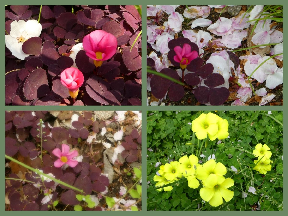 今日は5月初め頃の気温となり、道端の花もきれいに咲いていました。オキザリス。3枚は同じ種類。名前は・・・?忘れた。右下は大黄花オキザリス蕾が風車や独楽のようで、可愛い~~フリージアは・・・誰かが球根を植えたのかな?もう、つつじが咲き始めていました。すっかり落下が激しくなってきた桜。でも場所や枝によったら、最後の桜が楽しめました。あちこちの八重桜が見ごろを迎えていましたが、やっぱり、桜はソメイヨシノですね・・・風や雨に弱くて、満開から1週間もすれば散り始めてそのはかなさがたまりませんね・・・