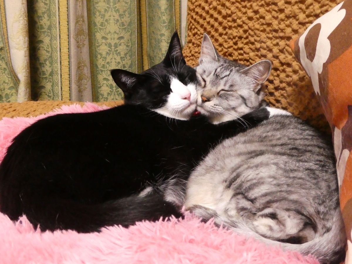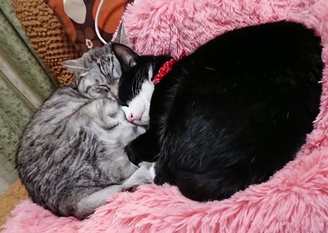 相変わらず仲良しのにゃんず。ぐんちゃんのピンク色の鼻がすき~~こんな仲のいい2匹ですが、たまにドタバタと取っ組み合いをしています。無言でやるからおもしろい・・・