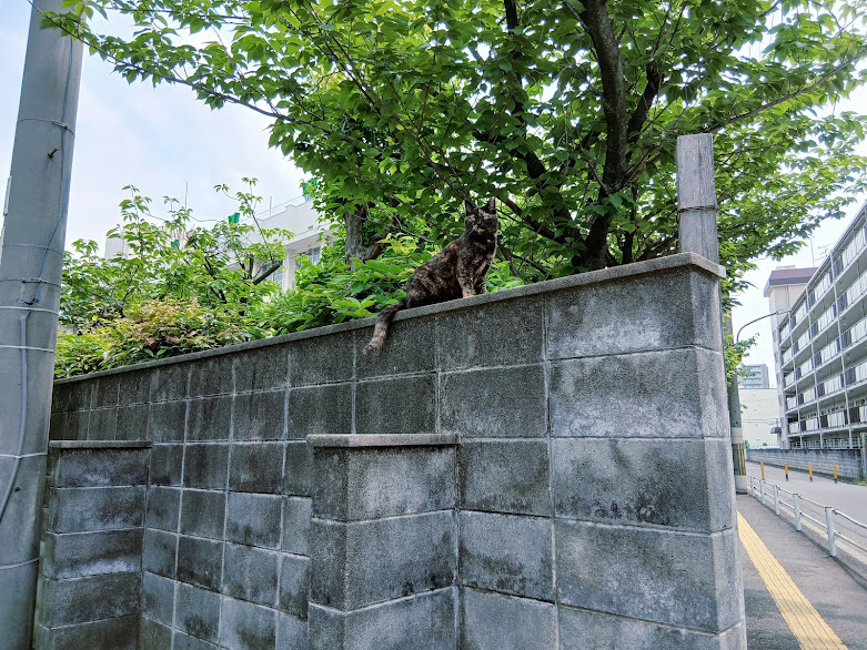 高校のブロック塀の上にいたサビ猫ちゃん。道路側の塀はブロックから、鉄製の柵に変わりましたが人の通らない方はブロック塀のまま。その上で、あたりを見回していました。サビ猫は三毛猫と同じく、ほとんどがメス猫なんですって。猫の中では、あまり人気のない毛色らしいですが、性格はとてもいい、とのこと。海外では「べっこう猫」と呼ばれて、人気なんですって。ところ変われば・・・ですね。昨日、けーやんが荷物を運んで、越してきました。ずっと東大阪に居たらいいのに・・・と思ってましたが、そういうわけにはいかなかったんでしょうね。一人ののんびりとした生活は、もう戻ってこないんですね・・・3匹の猫はそれぞれがバラバラのところで生活しています。カビ子は相変わらず、ミャーコにもぐんちゃんにも受け入れてもらえず、ひとり、メェメェないて歩いています。やれやれ・・・これから私と3匹の猫の生活はどうなるんでしょうか・・・
