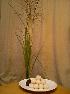 お月見団子週末は、ものすごい風と雨でした^^;家が吹っ飛ばされるかと・・・せっかくの十五夜なのに・・・と思いきや、次の日はとってもいいお天気。十六夜(?)ではないけれど、お団子とすすきを飾って、いやいやお供えして、山下公園へお散歩に行きました。 空気が澄んでて、すっごくきれいだったけど、ものすんごく寒かった・・・そういえば、天気予報で言ってたっけ。「夜のお出かけには、何か羽織るものを一枚、持って行きましょう。」と。でも、関西と関東のお団子は違うんだよね。なんか味気ない・・・やっぱ、手作り???