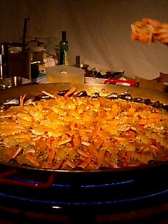 おほほほ・・・セレブな気分にひたって参りました^^多分一生に一度、最後のパーティー?(そんな大げさなもんじゃなかったけど・・・)行く前は、「何でもさんざん食べて、飲んで、お腹いっぱいになれば帰ればいいのよ。」と言われ、当日同伴する人からは、「始めに大使夫妻が出迎えて下さるのよ。」と・・・どきどき・・・どきどきどき・・・・・緊張~~~どうしよう・・・なんか話しかけられたら・・・なんて答えればいいの?スペイン語、習ってるのにぃ・・・(何にも浮かばない^^;;;)とりあえず「Gracias por invitarme」(ご招待ありがとうございます。)と、笑顔で握手~~~何かわかんないけど、8人くらいで出迎えてくださっていて、最後の方の人は、「!Hola!」(やぁ!)となってしまって・・・まっ、とりあえずここさえ突破してしまえば、あとはご馳走の嵐^^パエリャやハモン・イベリコ、ケソ(チーズ)、ワインにシェリー酒チュロス(甘くないドーナツをチョコレートに浸しながら食べるの^^)などなど・・最後にはあっまぁ~いチョコレートケーキ^^;;;スペイン人の男の人も食べてました!(すごいっ!!!)パエリャが炊き上がる頃は、すでに長蛇の列。 後から行っても大きなパエリャ鍋がキレイに何にも無くなっています。そんなのが、3つ、4つ、5つ・・・?いや、もっとか?18時から始まったのですが、20時を回る頃にはお酒類はもうほとんど無く・・・ハモン・イベリコも3~4本は無くなってたな・・・有名人も来てるかと探したのですが、なんせすっごい人・人・人・・・また、夜の催しなので、暗~い・・・でも、そんな中、昨年のN○K・スペイン語会話の「エミリオ・ガジェゴ氏がいらして、少~しお話しました^^もちろん、日本語で・・・そうそう、18時の開門と同時に、TUNA(トゥナ)と呼ばれる学生の弾き語り?みたいな人たちが出迎えてくれて、異国情緒たっぷりでした。彼らは普通は素敵な女性のバルコニーの下で恋の歌を歌うそうです。そういえば、むかぁ~し、そう、遠いむかぁ~し・・・サラマンカ(スペインの都市名・大学都市で有名?サラマンカ大学というのがあって、留学生多し)のマヨール広場でお茶してると、彼らが寄ってきて、甘~い調べを弾き語ってくれたっけ・・・(観光客相手だけどね・・・)今日は・・・・???そう、レセプションですね。弾き語られたい・・・今日この頃です。ん?でも、何の祝日なの?明日、先生に聞いて来よう!!