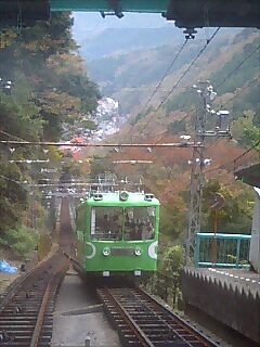 23日、予報は雨にもかかわらず「そうだ、もみじ狩り行こう!」ということで、行ってきました。関西に住んでいた頃は、箕面の滝や京都の嵐山、市内など毎年行っていたのですが、関東に来てからは、どこも大変な混雑で避けてました。おととしは電車で箱根に行き、日帰り温泉でも・・・と出かけたら、登山鉄道から強羅ケーブルからもうすごいことになっていて、昨年は母のお墓参りを兼ねて、ついでに京都へ立ち寄ったらここもまた、いつの間に・・・というような人の多さでした。で、これらの反省を踏まえて・・・宮ヶ瀬ダムの方へ行ってみました。私は京都の月ヶ瀬ダムのイメージでいたのですが、何だかおっきな湖(宮ヶ瀬湖)があり、その周辺にそろそろ色づき始めるかなぁ~程度の紅葉でした。あっという間に見物し終えたので、近くの大山へ行ってみようということに・・・ケーブルカーもあって、楽しいかも・・・なんて軽い気持ちで出発。駐車場に車を入れるまでに約1時間(><)ずっと下の大山小学校前の無料駐車場に入れて、シャトルバス利用すればよかった・・・案内も何もないので、初めての人には不親切かも。駐車場に入れたらすぐにケーブルカー乗り場かと思いきや、お土産物屋さんや、お豆腐料理やいのしし鍋を食べさせる旅館などが並んだ参道をかな~り歩いて、やっとケーブルカー乗り場へ到着。ケーブルカーは10分間隔で動いていて、100人乗りとのこと。予報が雨ということと、お昼時をかなり過ぎていたので、人出はまぁまぁ・・・だったのかな?紅葉もこんな感じ。夜はライトアップされているらしいけど、26日までとか・・・。まずは阿夫利神社下社へお参りをすませ、3軒並んだ茶店へ・・・とにかく勧誘がすごくて、入りづらい、入りづらい・・・子供に選ばせ何とか昼食を取ることができました。帰りは途中下車して、大山寺へお参り。ここまではもう二度と来ることはないだろうということで、一気に見てまわったけど、あったくなったらハイキングがてら来てみよう!もっと早く来ればよかったと後悔・・・子供たちも意外と楽しかったようで、帰りにでかせんべいを食べながら、駐車場へ。その後清川村へ戻り、村営?の「別所の湯」へ入り、ゆっくりしてから岐路へ。野天風呂は怪しげな緑のライティング。下駄箱は鍵がなく、しかも自分で入れた場所を覚えておかなくてはいけない^^;;;でも、とぉーっても気持ちよかったです。ちなみに温泉ではなく、清川の水をわかしているだけのようですが・・・。とにかく、この辺りは穴場だと思いますっ!!!