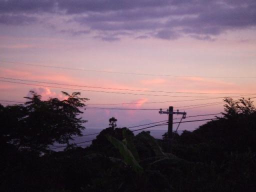 日曜日 突然の雨の凄いことお陰で草刈り作業 どこの地区も早々の撤退各村で反省会と称した飲み会 盛り上がったそうです月曜日 朝から梅雨明け思わせる上天気 ごろす様 畑は一段落とゆうことで 南国ぴったりのズッキーニ ホームセンターで苗を買い直した結果です三月に購入したパッションフルーツの枝這わせる竹製の棚作成 たった三ヶ月とは思えない成長ぶり 目を見張るばかり今日からは 自分で作った竹製の梯子利用して我が家のメンテかかるそうです ワタシは?ハイ また新しいコトにチャレンジその様子はまたいつか・・・昨日はおこしちゃんと連れたって 久しぶりの外食宿泊施設のペンションに無理いって夕食のみ頂くことに ご主人老人会の集まりとかでおこしちゃん我が家に配達予約時間前に三人で出発帰りに海の傍温泉入るので温泉セットも積み込みます我が家から車で15分 見晴らしのエエ高台のペンション風通しの善さにびっくりサービスで扇風機稼動してくれたのをあわてて固辞料理はまあまあ 造りの新鮮さは買いますが・・・ ↑は三人前ですぅ料理 このほかにトビウオミンチのおすまし 巻きすし各フタ切れデザートはソフトさの消えたケーキ あはははのはっ料理もさることながら 宿泊客のマナーの悪さに辟易乳飲み子連れた歳の大差?夫婦とダンナの親らしき若造りの母親小学生と幼稚園生の二人の女児みなで 同じ場所で食事するものの子供たち 好き勝手にうろうろ スリッパぱたぱた歩き回り乳飲み子 泣き叫びなんとも凄惨な食事風景こっちに気遣う風もなく 謝るでなし乳飲み子一向に泣き止まないので 「いいよっ 隣の部屋で泣かしとけばぁ」子守りし続けてたダンナにふかしながらヨメ命令素直にダンナ 泣き叫ぶ赤ちゃん 隣室に捨て置き自分ら 何事もなかったように飲み食い三昧こっちは喉ツマル思い赤子 泣き止むはずもなく 怒り狂ったように泣き声音量アップその声届かぬ筈ないのに完全無視し続けてやっとして ヨメ ダンナに合図したらカレそそくさ 部屋にはいってゆく情けなさ途端 静寂もどったのでこっちと悪い想像もくもく『ぎぇぇぇえええええっ ひよっとして?』布団被せたか クビしめたか 「きぇぇええええええっ」結局 眠たかったらしく抱き上げるなり爆睡したらしく ひと安心も束の間 ものの10分立ったらまた号泣開始あまりの賑やかさにうちら これ以上地獄の責め苦に耐えられようもなしそそくさ勘定すませて退散途中で眺めた山の夕焼けでやっとココロ静寂に・・・ 干潮時間に早いと渋るおこしちゃん突っついて温泉に到着こちらも見事な夕焼けで なんかメッチャ得した気分アホ家族のお陰でこんなすばらしい景色に遭遇した幸せ温泉に浸かってたら オコシちゃんモノスゴイ悲鳴「カニだよぉぉぉっ こんなにたくさんのカニなんか 見たことないよぉぉっ」産卵控えたカニの行列 そら壮観で・・・ 湯船の上から全員♪「前にナラエっ」ワタシのコト覗きます「きれいな奥さん 湯加減いかが お背中 はさみでながしましょか?」 どんどん 列作って海へ うみへ・・・ けど ひさしぶりに見た 満天の星のすばらしさこの夕焼けがその前兆やったんんやろかぁ?