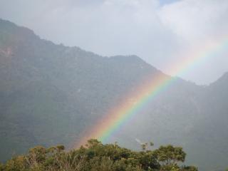 火曜日 今年初の足揉みさん来訪の日でした去年最後の施術日に難題の宿題「わしが 揉みやすいように もっと痩せといてんかぁ」そんなん言われても・・・・気にはしてたものの そうなりたいとは思ったものの 絶対やったるっと決心したのはしたもんの・・・年明けから気がかりひとつ・・・海傍温泉で 人の居ない時見計らってする秘密の遊び 両手広げて 大の字?状態上になんか乗せたらラッコ ひっくり返ったトド (あくまでも 謙遜ってことお忘れなく)最近 なんか浮かんのんです ズブズブって尻から沈没する錯覚が・・・慌てて運動なと考えたものの 今更ジタバタするのは性分に合わん今の状態 正直に見せるのがオンナの本懐問題の日結局 太ってることは悟られず!いや 彼独特の優しさやったとおもてますついでに足のぶつぶつ ストレス(鬱)って指摘されてた部分 ほぼ完治してるようですそら そうや!!前夜のお泊り宴会が功なしたんやろと 内心ほくそ笑んだ次第皆さんから解答頂いた料金 島民価格の12000円ぽっきり妥当とゆうより お得感満杯のプランやったと 四人揃って絶賛して帰宅ここ数日 こちらも大荒れ天気継続それでも温泉通いする根性見上げたもんでしょ昨日なんか 雨天決行で行きました雲行き怪しくなり「もう 出ようかぁ」との提案に「大丈夫やがな まだ温もってないしぃ」とダンナの冷静な判断狂いあっとゆう間に大雨に・・・おまけが雷鳴止み間見て 慌てて帰宅したものの 車内で二人無言身体は温まったものの 内心冷え込んだ宵の口 あはははははっ最後に 昨日の見事な虹 おすそ分けします あっとゆう間に 大きな輪つくります その後 また一時間後に別の場所に出現