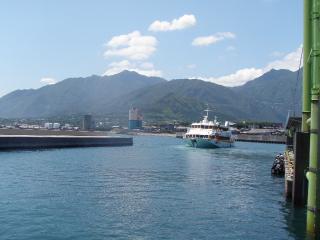 ハル嵐のためいとしいたかときちゃんとの対面一日順延けど・・・・後から考えたらそれもまた神様の御配慮かと・・・サラリーマンの辛さ おおっぴらに休みとるのをはばかって休暇の目的 ご多分にもれず「法事のため」よって仕事の追い込みも半端でなかったようですお江戸の出発早朝 子連れで七時に空港着とゆうのは至難の業? 前夜から荒れ模様の海空案じて 予定キャンセルしてすぐさまチケットキャンセル待ち指示結局 対岸の都市に着いた途端に全便欠航決定為すすべなし 一か八 とりあえず港へ移動もちろん すぐにこっちも欠航決まり 慌てて当夜の宿取り翌日に備えることにもし高速船出港しても大揺れ 船酔いは否めません接岸さえもままならず もしそのまま本土にUターンあるやなしや早々と欠航決まったのがなによりどうせ 到着したところで時間が時間三時半着では どこにも観光できん時間諦め善いのがナニワオンナ体力温存するため こっちも早々と就寝翌日九時半 夫婦勇んで港まで・・・ 慌てすぎて旅行社旗持参すること忘れたものの前回の客人 ベルバラちゃんたち迎えに行くのに遅刻したのが記憶に新しい今回 バッチリ20分前に到着 先の船出たら ややして お目当ての船到着親のココロ 子ぉ知らず乗客どんどん下船してくるのに息子一家の姿 最後まで見えず不安にもしや もしや ひよっとして まさかぁ!船着き場に向かってるのは連絡済みあっワタシが要らん買いモン頼んだから乗り遅れたんやろかぁはい 前日ムスコにそっとリクエスト『あのなぁ 「ミス℃」の「℃ー夏」食べたい たまきひろしが食べてるのん 欲しい』「うん わかってる Nちゃんが 前におかあちゃんが云ってたこと憶えてて買って行くつもりやったから」つい 憎まれ口ぽつり「どこどこの有名スィーツなんか欲しがらん 安上がりのおかんやろっ」みす℃のケース 高々挙げて 最後に息子たち登場 「ふぅぅぅぅっ」おぢょうさま二人 抱きあげようにもこの有様 夢見心地のエエこんころ持ち 起こすのも可哀そうで・・・荷物積み込み 全員乗り込み発車島あそびの始まりです白●雲●峡めざし ♪ごごごぉぉっ時間帯悪かったのか なんとか車停めれて五人川沿いからスタート三歳寸前なのに 抱っこもせがまず急な階段 ものともせず 途中 大きな杉の前でおやつタイム念願の℃ー夏 みんなでかぶりつきました 途中現われた鹿にたかとき興奮 さすがに疲れたのか ぐずりそうな気配察知二人代わりべんたにかくれんぼさせながら最終地まで完歩高い山から一気にドライブ気分で下山サルもあちこちで見れてますますテンション昨日の天気がうそのようわずかな滞在日数考えても幸先善いスタートきれたようです