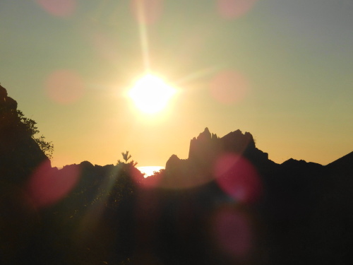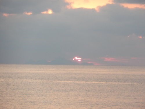 今日の温泉落日ショーです師走の気忙しさ忘れる素敵な時間過ごせましたてつと散歩してるときは対岸の島はっきり くっきりそんな時にカメラ持参してない辛さやはり今の暮らしが当り前になったのか出掛ける時には忘れず!にが定説だったのに デジカメ持って行かんことが増えてますとゆうのもてつ連れて美味しいお魚貰いにいったからぁ近所の釣り名人さんに以前から食べたい魚リクエスト夕方連絡あって「やがら」釣れたってさすが名人さん綺麗に始末してくれてて二重 三重に嬉しい ウレシイ内地では滅多と入手できん高級魚珍魚の赤い魚 へいけもおまけにくれました明日 煮つけにして 頂きましょ!! ♪るんるん