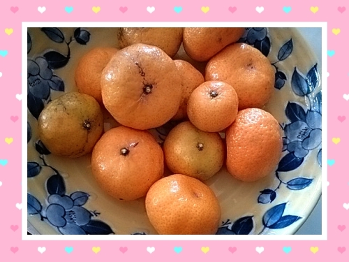 メッチャ小ぶり大仏さんの鼻●そ位の大きさのくろみミカンです8月 四泊五日で長逗留した10月 二週続けて襲撃された三度のの影響底知れず・・・・これから収穫するポン●ンほぼ全滅 いや壊滅状態で 大部分落下三月収穫予定のタ●カンも振り回されて傷だらけ 親戚 友人への島からの定番贈り物今年は多分ムリみたい土曜日シマの先輩さん 二軒から「美味しくないけど 善かったら 持って帰れっ!」 頂いたポン●ン やはり・・・・どうしたもんかいなぁって思案してたらリンゴと一緒にしたら追熟するって 以前 農家さん訪問した時沢山毛布があったからナニするのかと尋ねたら毛布にくるんで温めるのが 味の甘みアップの手段とか 真似っこして 今年はどこにも送れんやろけど 我が家で季節のモノ頂くことに昨日の宴会愉しいものになって夕方六時開始自宅帰ったのはしんでれらタイム美味しいお話朝にでも綴ります