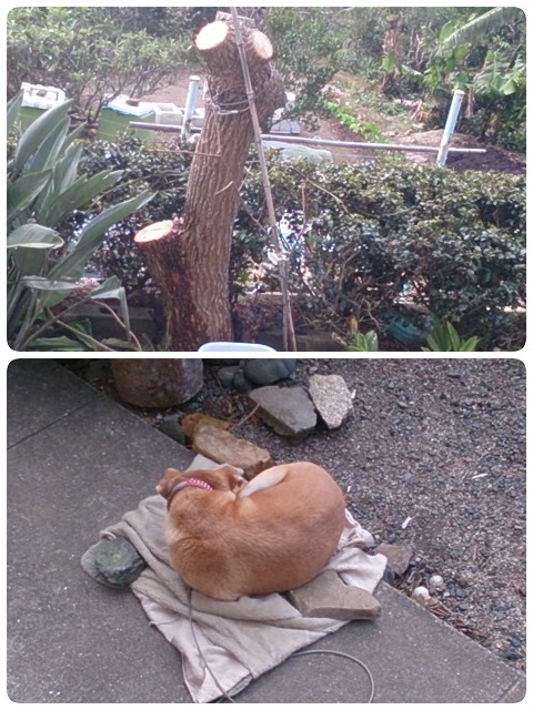 昨日は 御久しぶりの足揉みさん本年最初の施術訪問日足裏ひと通り揉んでもらったけど別段異常もなくひと安心施術中にゴルフ・せいちゃんチームの班長さんからでした「あのよぉ 今日は 練習休みだよっ風が強いからしっならん(出来ない)」揉んでもらってたから立ち上がる暇もなく留守電メッセージに録音げっなんで?確かに てつ公おうち前のデイゴは倒れたけど・・・・夏の台風に何度も練習日に重なっても中止になったことなかったような・・・午後からのスケジュールぽかんと空いて・・・・テツパチーノは倒木の手当とゆうよりもっと虐めて まるで丸たんぼーそのものに元はといへばでいごの根が張りすぎて下の畑まで侵入土掘り起こす勢いに 危機感おぼえばっちん ぱっつん根伐り!七年前 てつ公が家族になった記念樹兼ねて夏場の日よけになればとの親ココロでいごは落葉樹冬場は葉を落とすから 陽ざしさえぎることもなかろうと安易な考え無残に消えて縦横無尽に伸びる根にまず閉口冬場も完全に葉が落ちるってこともなく枝に小鳥たちのたまり場作ったのも一因遠慮なく伐採したからきっとデイゴワタシは不要かと 嘆き悲しんで覚悟の自殺かと思うほど・・・再起は期待できずともてつが落ち付かん様子見かねてまたまた要らん枝切りおとした結果こんな姿で再生 両手もがれてるみたいひとつグッドアイディア 浮かびますそやっ久しぶりになと・・・お仲間さんに声掛けしたものの前日の某スーパー主催の試合雨天会場で開催したものだから参加人数が多すぎて閉会式は五時半過ぎで一日 棒にふった様子皆さん お疲れあったりなんかして結局2人だけで行くことになりスーパーで待ち合わせてエスプレッソが美味しい 移動車の店に・・・・こんな寒い日のオープンカフェはツライものがあり珈琲 車内に持ちこんでお喋り開始まだまだ 喋りたいけど肝心のエスプレッソの量が足らず黒猫さんがお泊りになった喫茶室でケーキセット食べながらまったり時間過ごしました 珈琲のお代わりしたりなんかしてたら四時半までゆっくりなかなか話せないことやら聞きたいことじっくりお喋りできて有意義な昼下がりになったこと 幸せにおもってます