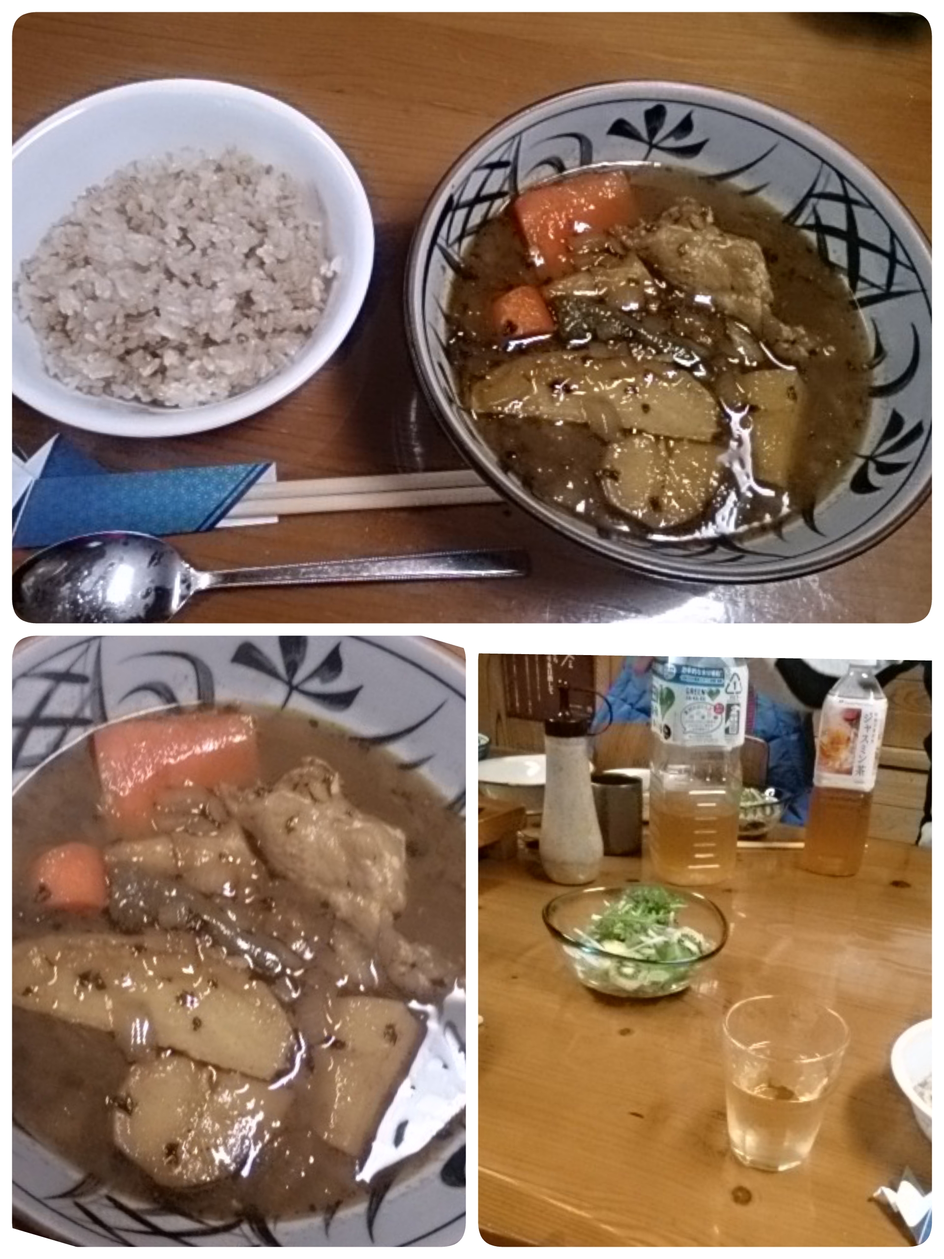 スーパー月?てつは家ん中 気になって 気になって・・・ はい豪華なおせち よだれ垂らしながら 明日たっくん一家帰ります今日の模様は また明日にでも明日は毎年恒例ぐらんど・の初打ち大会班対抗試合の後はお弁当頂いて 会食宴会突然お仲間のMさんから夕方「アンタよぉ~ ワタシはナマス作っていくからぁ」そんなん聞いたらワタシもなんか作っていかんならん夕食の豪華肉利用してのすき焼き食べ終えて後片付け終えたら薪ストーブの火が燃えてる間にひじき ひよこ豆 鶏肉 薄揚げ混ぜて煮込んでますお年寄りは寒がり風邪ひかんよう甘酒も大きな鍋にすりきり一杯炊いてます明日は優勝目指して頑張らんと!さてとぉ ぼちぼちひじきが炊き上がりました 火の始末して寝ないとね