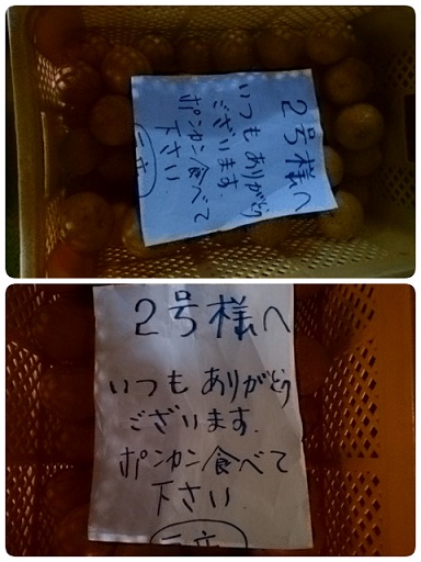 シマに暮らしてもうすぐ10年いろんな出会いや別れがあって・・・・ご縁あって此の地でチチハハっって呼べるご夫婦も出来て・・・タ●カン ポン●ンの季節には 「アンタの木 一本置いてるから 採りにおいで」テツパチーノと欲と道連れ夫婦二人の共同作業で持ち帰れないほどのみかん頂いて帰ったのも懐かしい出来事 寄る年波には勝てなくてとーちゃん代わりのおぢちゃん昨年から入退院の繰り返し丁度 ワタシが通院してるだったので受診の折には病室にお見舞い初めて 病室に入ったときはあまりにもやつれた姿に本人確認できず枕もとの名前みてやっと・・・・意識はしっかりしてたからワタシの名前告げ両手でおぢちゃんの手 ぎゅうっと握りました入れ歯も外してたから 余計本人確認できなかった暫らくすると看護師さん 走ってきて「なんか ありましたかぁ?」「いいえ 大丈夫ですよ なんもないですっ!」またお手手 ぎゅうっと握って 喋ってたらまた看護師さん走ってきます「なにか ありましたかぁ?」おぢちゃんのbedに触れたらセンサー働き詰所に連絡行くシステムらしい「すみませぇぇん これから まだまだいろんな事するからセンサーは切断しといてください」暫らくすると奥さんと娘さんも見舞いにやってきて 皆で暫し談笑また顏みせるからと約束してその後娘さんから「ポン●ン要り様なら 取りにいらっしゃい」翌日指定された倉庫に行ったら・・・・ ワタシどうやら 本妻公認のあいじん? 今年初めてのお見舞いアネサマ伴って 明後日行く予定です